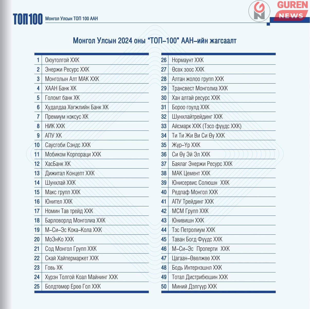 Топ 100-д уул уурхайн салбар давамгайлж байна