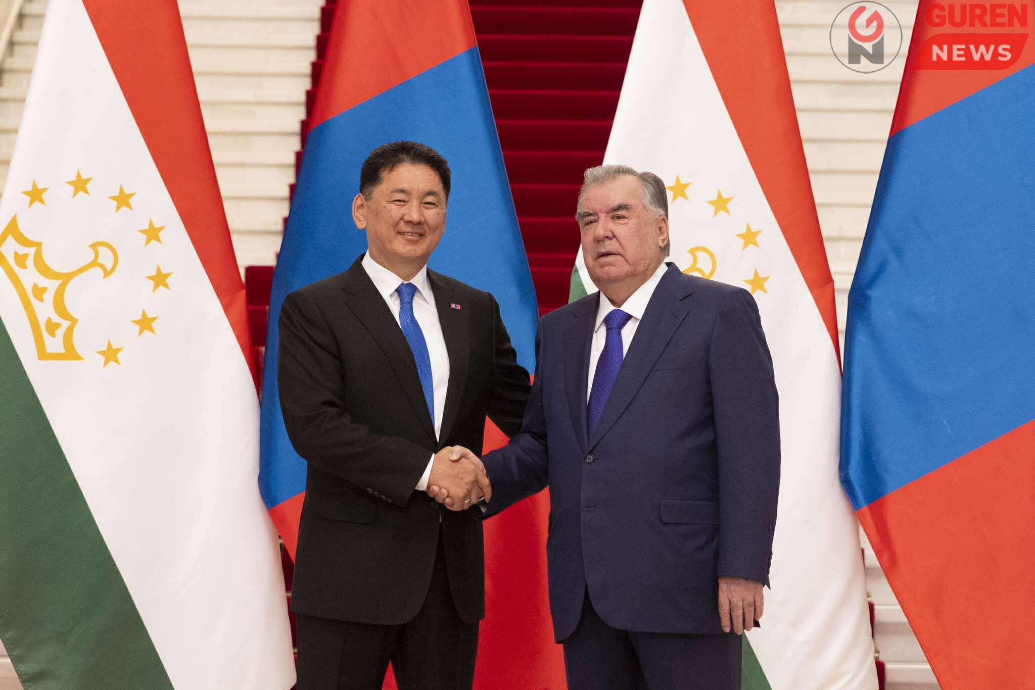 Ерөнхийлөгч Эмомали Рахмон, хоёр улсын хооронд 1992 онд дипломат харилцаа тогтоосноос хойш анх удаа төрийн айлчлал хийж байгаад Ерөнхийлөгч У.Хүрэлсүхэд баяр хүргэлээ.