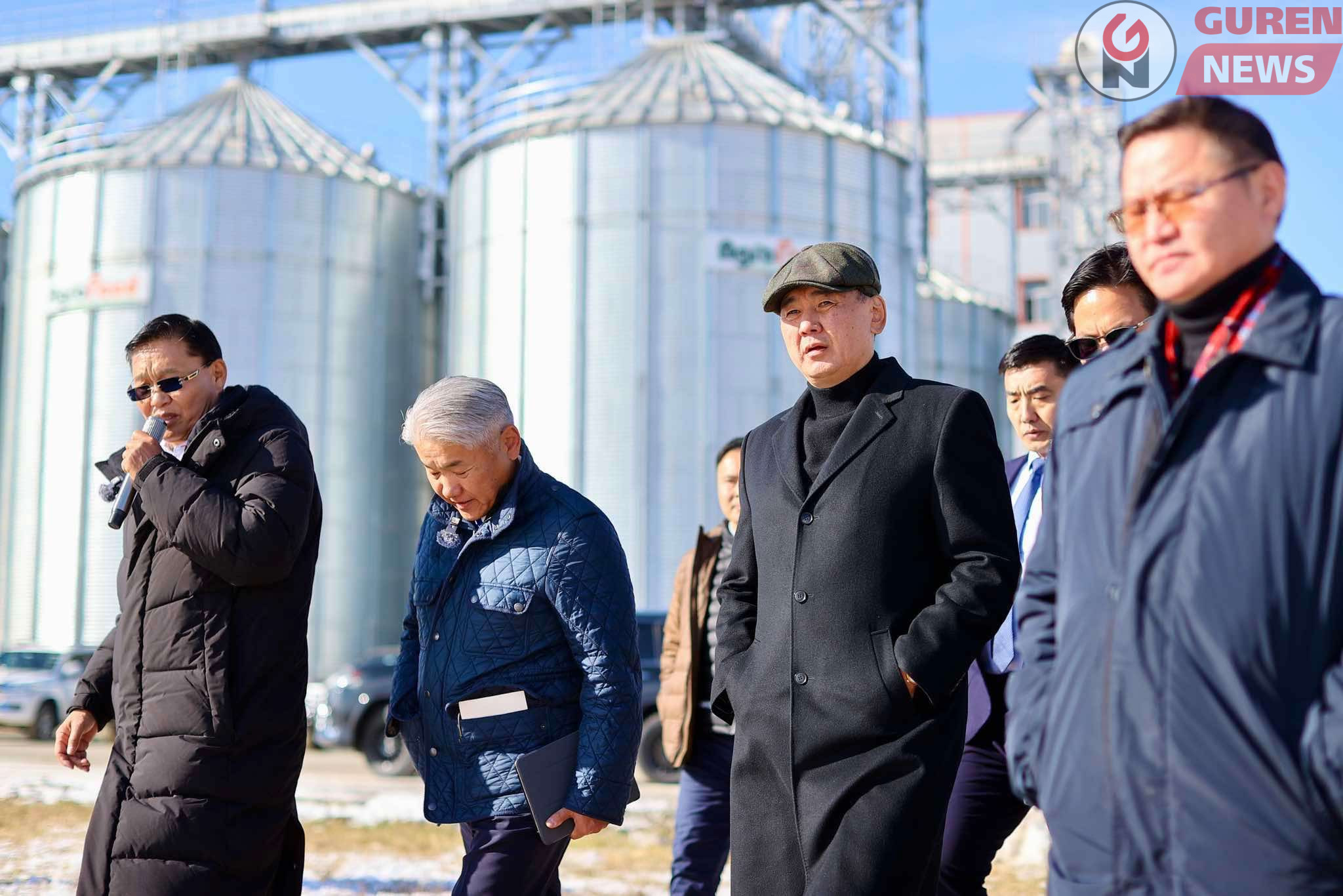 Монгол Улсын Ерөнхийлөгч У.Хүрэлсүхийг “Түмэн шувуут” ХК-ийн “Агро фийд” тэжээлийн үйлдвэрт хүрэлцэн ирэхэд компанийн ТУЗ-ийн дарга Л.Эрхэмбаяр, гүйцэтгэх захирал Ж.Болд нар тоног төхөөрөмжийн шинэчлэлт, бүтээн байгуулалт болон үйлдвэрийн үйл ажиллагааг танилцууллаа.
