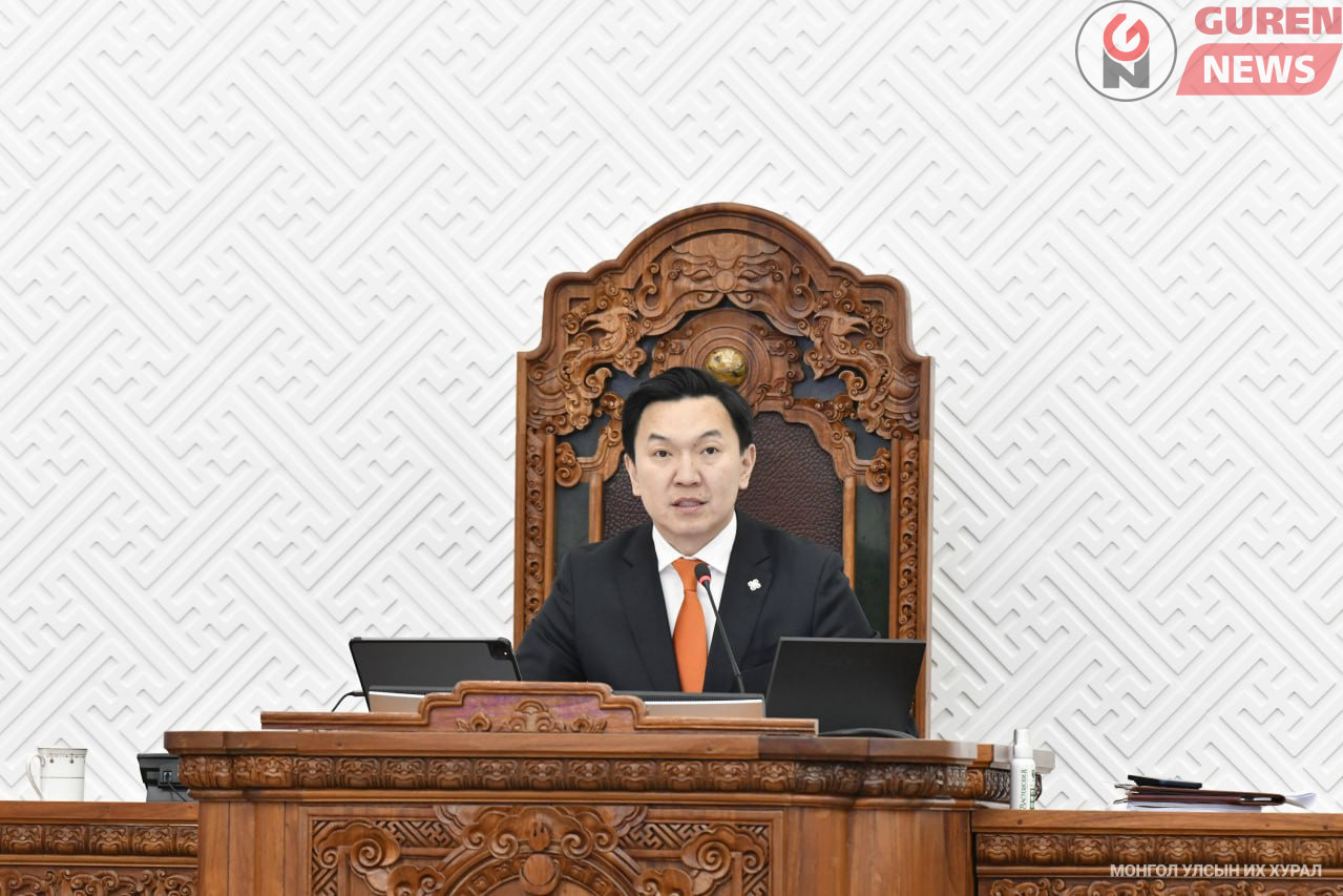Монгол Улсын Төрийн дуулал эгшиглэж, Улсын Их Хурлын гишүүд болон зочид төлөөлөгчид босож хүндэтгэл үзүүлснээр Улсын Их Хурлын 2025 оны намрын ээлжит чуулган өндөрлөв.