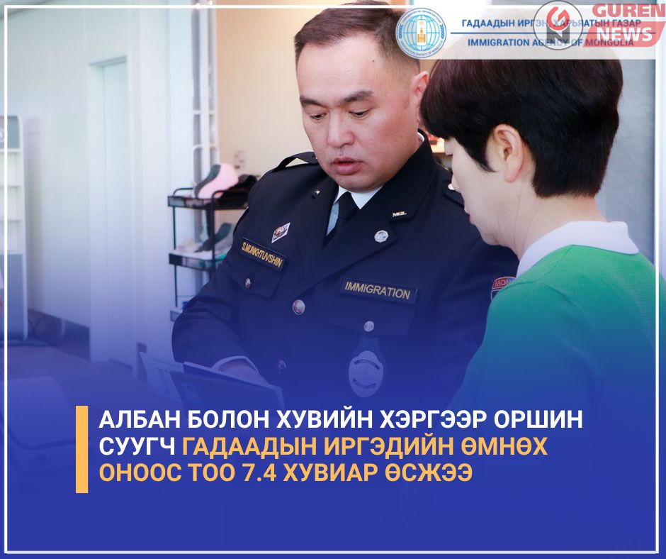 Монгол Улсад оршин сууж буй гадаадын иргэдийн тоо 7.4 хувиар өсжээ