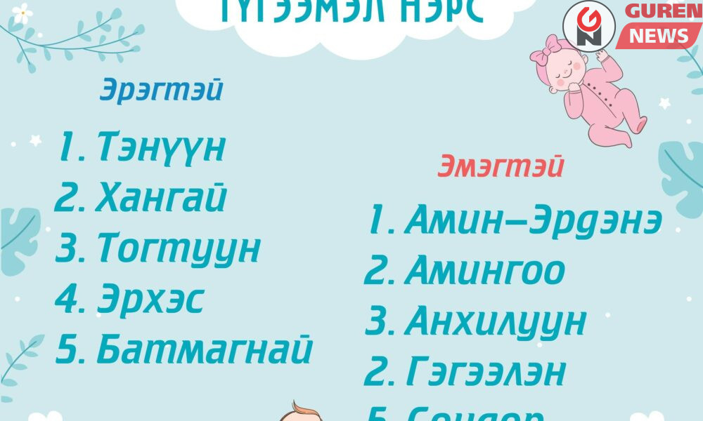 Статистикийн мэдээллийн нэгдсэн сангийн “Сонирхолтой статистик” цэсний мэдээллээр 2025 онд Монгол Улсад мэндэлсэн хүүхдүүдийн нэрсийн хамгийн түгээмэл жагсаалтыг гаргасан байна. Хөвгүүдэд хамгийн түгээмэл нэрс: Тэнүүн Хангай...